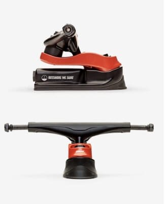 Trucks: Slant Surf/Skate trucks (magnesium; volgens Globe ~25% lichter dan vergelijkbare aluminium trucks, met geïntegreerde riser pads en een lager zwaartepunt)