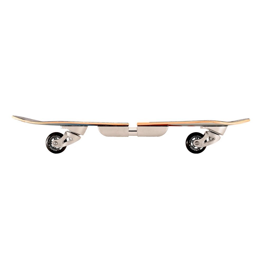 De Wave Rider Abstrakt in Abstrakt (multicolor) is een 84 cm waveboard met twee deckdelen en een torsiestang. Deze Wave Rider Abstrakt is bedoeld voor unisex rijders die soepel willen carven en hun balans willen verbeteren.Het grote voordeel: veel wendbaarheid met gecontroleerde grip. Op de foto zie je twee zwarte deckdelen met een abstracte, kleurrijke print en duidelijke Street Surfing-logo’s, verbonden door een stevige middenbalk.Je ziet een antislip textuur over het volledige deck, afgeronde randen en compacte wielhuizen. De combinatie van het tweedelige deck, de torsiestang en draaibare caster-wielen geeft direct stuurgedrag en efficiënte voortbeweging zonder telkens af te zetten.