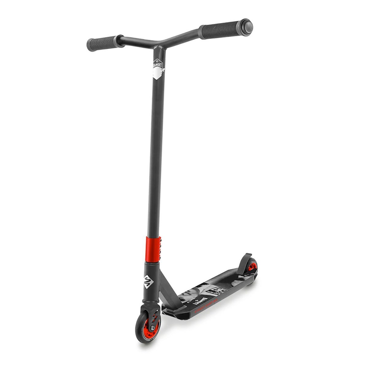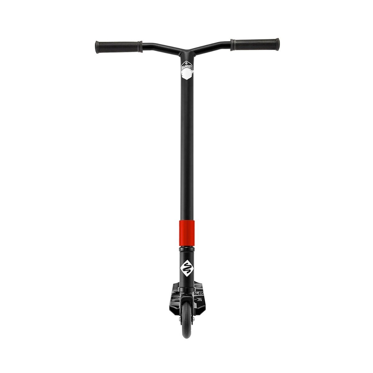 Compacte Bandit X stuntstep met 110mm wielen in zwart/rood. Gemaakt voor controle, snelheid en park of straat.